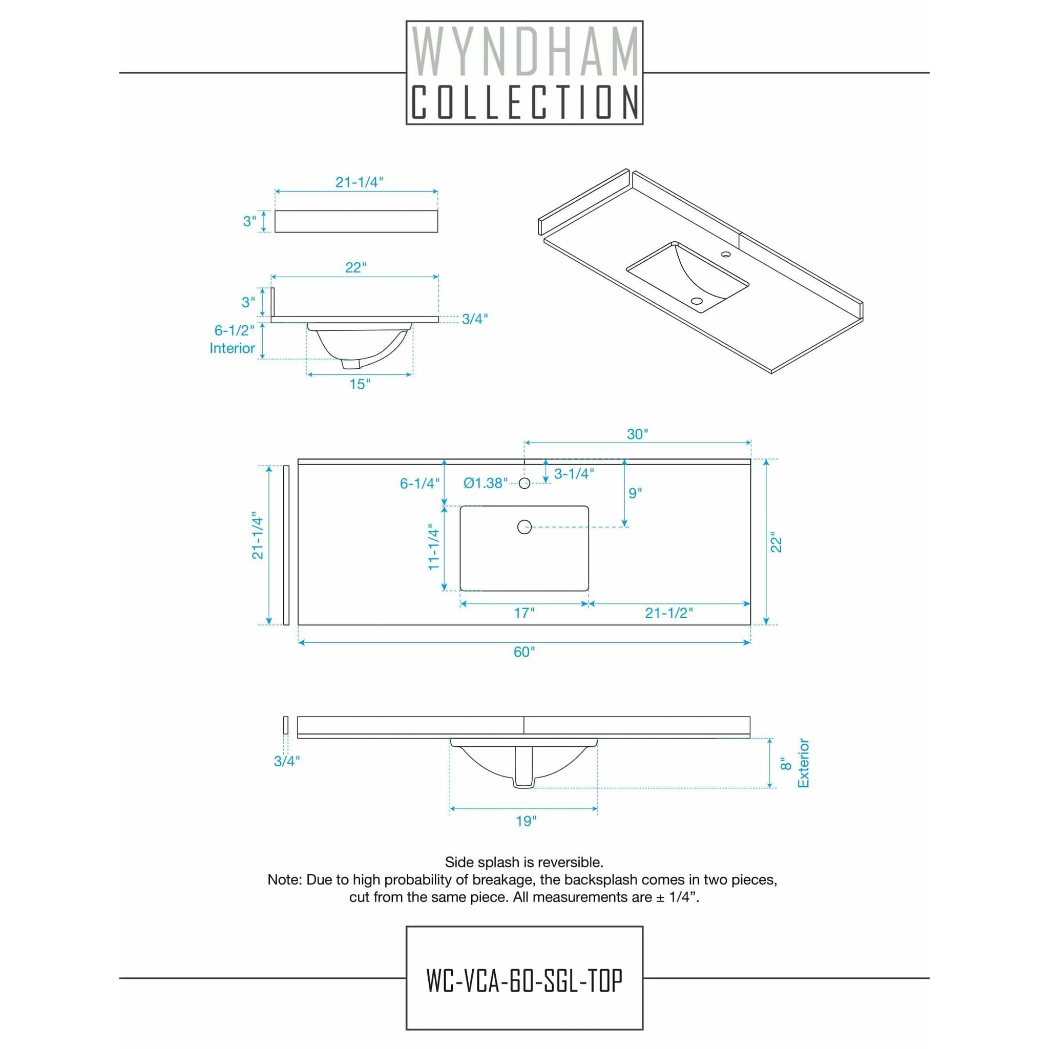 Carrara Cultured Marble countertop includes 3" backsplash and reversible side-splash |