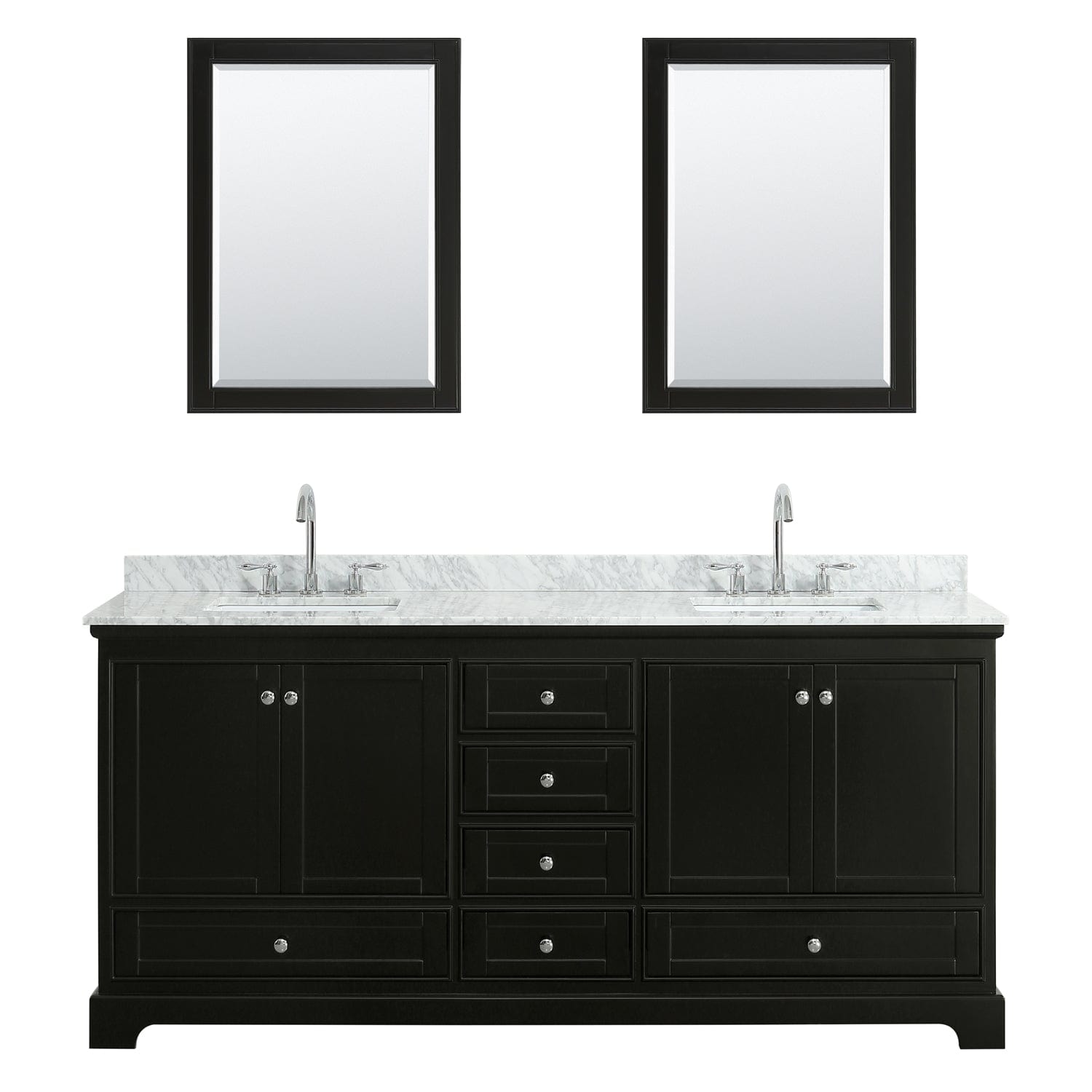 Wyndham Collection WCS202080DDECMUNSMED Deborah 80 Inch Double Bathroom Vanity in Dark Espresso, White Carrara Marble Countertop, Undermount Square Sinks, and Medicine Cabinets