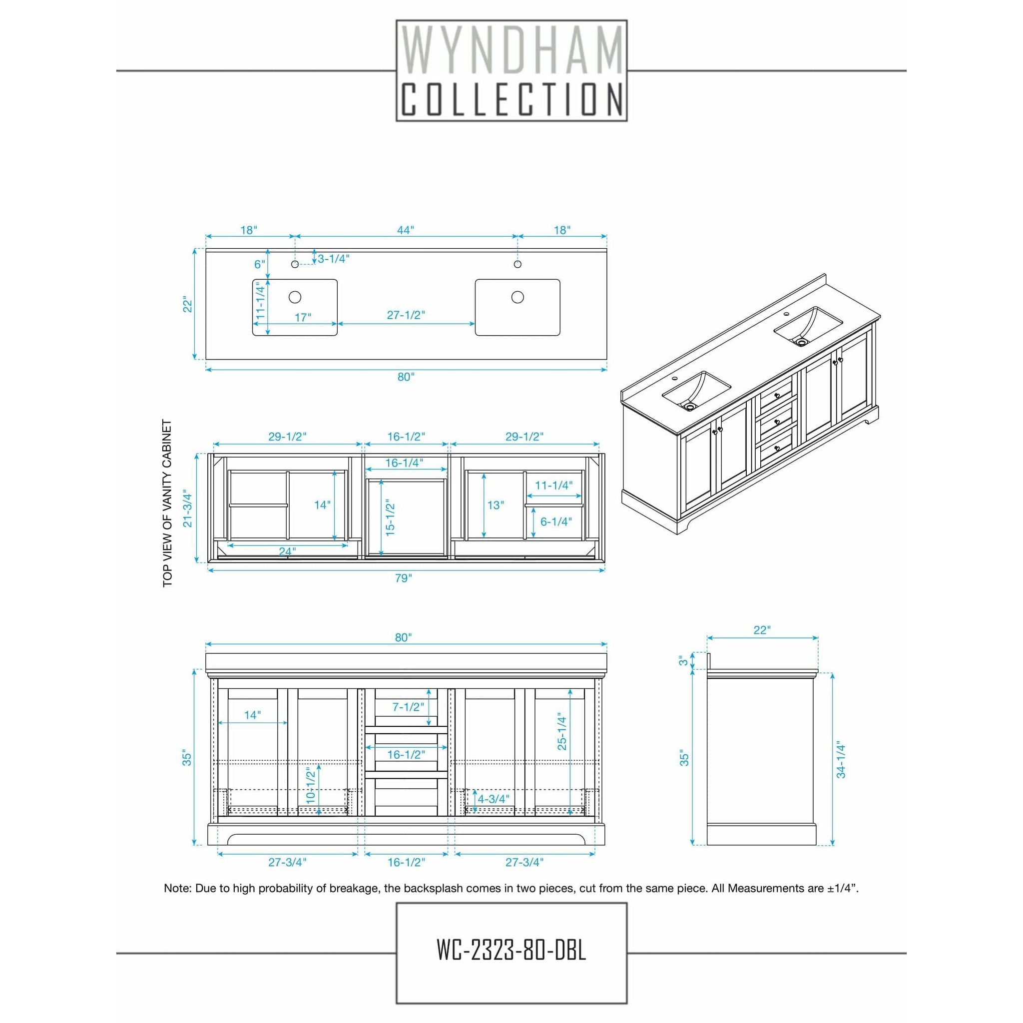 Backsplash comes in two pieces (Cut from one single piece due to high probability of breakage) |