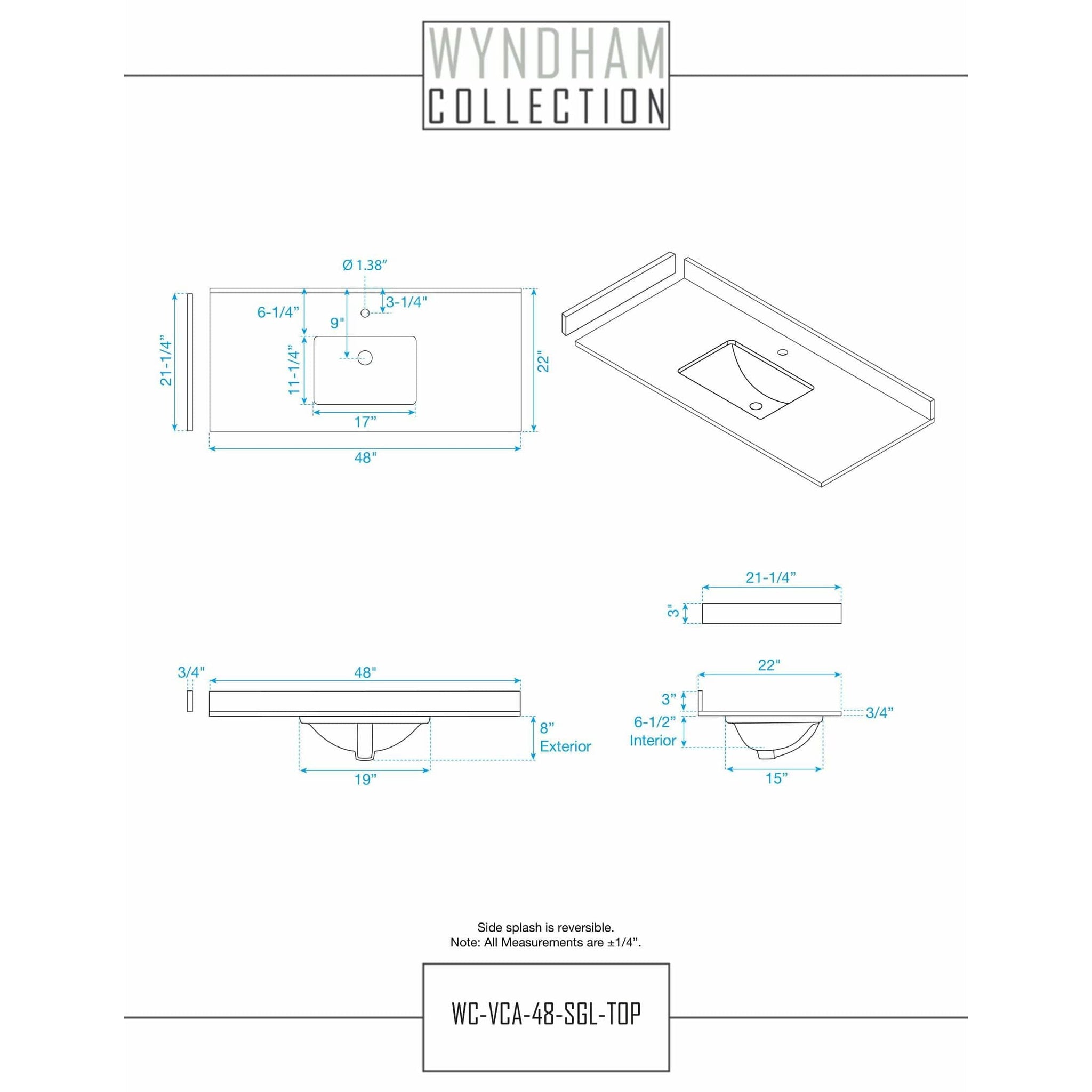 White Cultured Marble counter includes 3" backsplash and reversible side-splash |